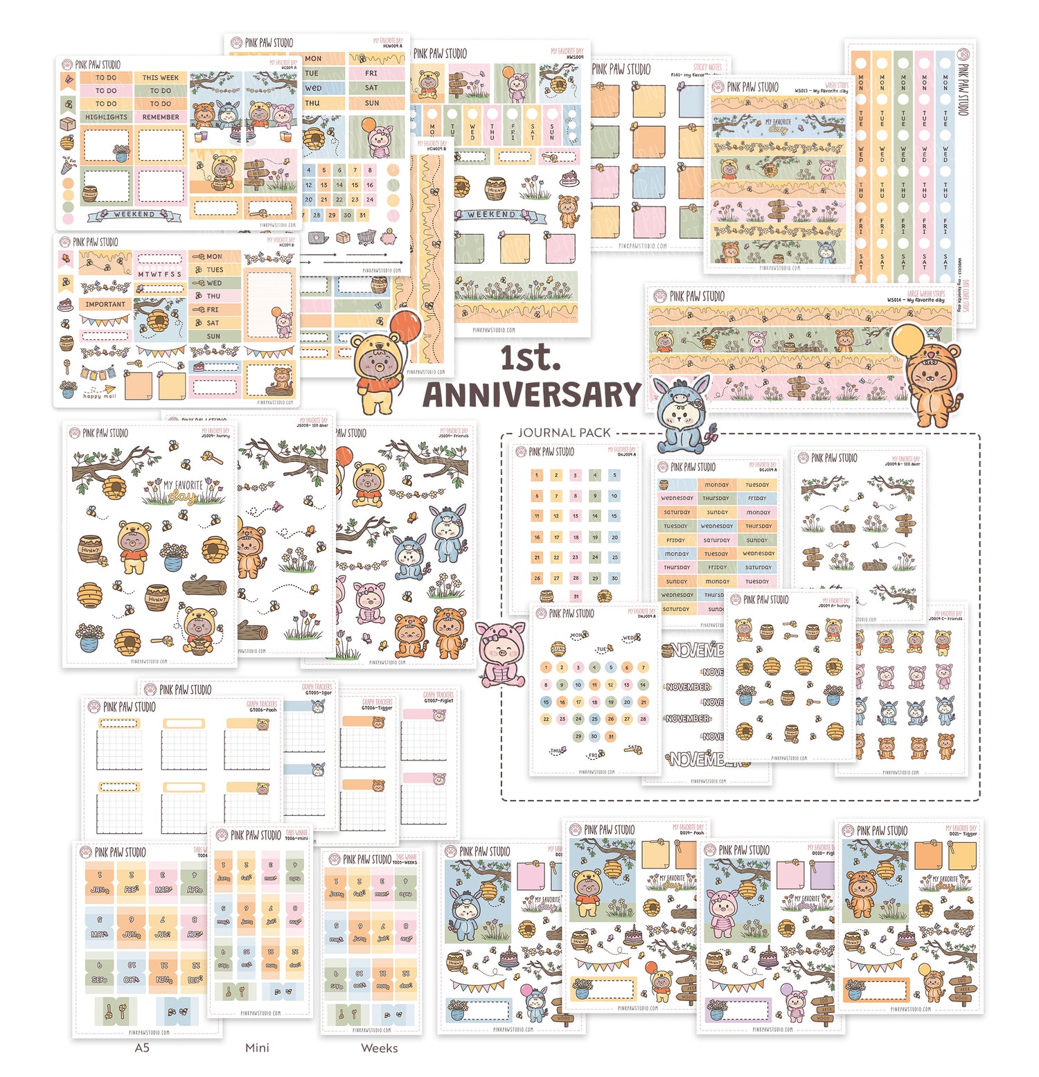 This collection is close to my heart, celebrating both my store’s first anniversary and my birthday! I created it with Winnie the Pooh and friends to bring back the joyful memories of my sons’s first birthdays with the same adorable theme.
